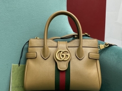 【P1280】Gucci包包批发 古驰原厂皮红绿织带波士顿手提包21CM