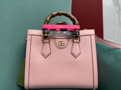 【P1430】Gucci包包批发 古奇新款660195粉色Diana竹节包斜挎手提包大号