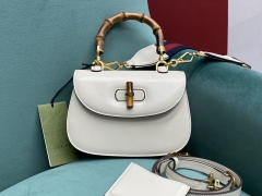 【P1580】Gucci包包批发 古奇秋冬新款675797白色斜挎手提竹节包马鞍包