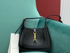【P1170】Gucci Jackie 古驰新款黑色原厂牛皮斜挎单肩女包腋下包迷你19CM