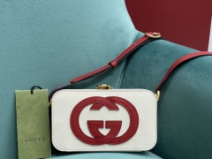 【P900】古奇包包货源 Gucci新款白色皮配双G面料织带相机包斜挎包