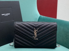 【P1130】YSL包包货源 圣罗兰迪丽热巴同款黑色WOC链条信封包 银扣