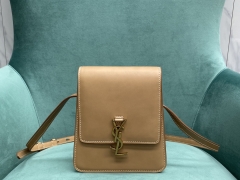【P980】YSL包包货源 圣罗兰新款668809棕色牛皮Kaia斜挎马鞍包18CM