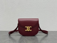 【P1620】广州包包批发 Celine赛琳新款半圆马鞍包金色凯旋门扣 110413猪肝红