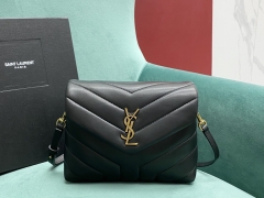 【P1200】YSL包包官网 圣罗兰467072黑色Y字绗缝羊皮迷你LOULOU斜挎包 金扣