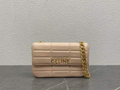 【P1650】Celine包包货源 赛琳2022新款羊皮格纹链条单肩腋下包 111723裸色