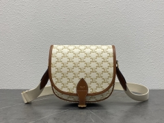 【P1050】Celine包包价格 思琳秋冬新款196932 米白印花料帆布肩带马鞍包