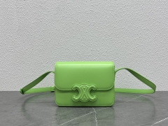 【P1500】Celine包包价格 思琳鲜绿色牛皮浮雕凯旋门Box豆腐包18CM