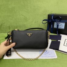 一件代发 Prada普拉达新款黑色十字纹牛皮链条单肩斜挎女包腋下包20.5CM