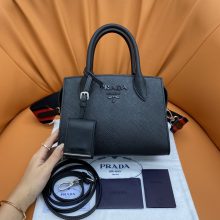 一件代发 Prada普拉达66667黑色Saffiano皮革手提女包单肩斜挎包22CM