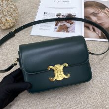 Celine女包批发 思琳188423墨绿色进口平纹牛皮单肩斜挎豆腐包18CM