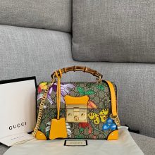 Gucci新款女包 古驰爆款603221花/鸟系列竹节箱子包手提包23.5CM