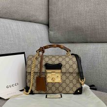 Gucci女包价格 古奇新款Sylvie 1969手提袋棕色进口牛皮手提斜挎包26CM