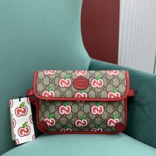 【P800】Gucci七夕情人节新款 古奇双G苹果图案原厂经典老花女款腰包胸包24.5CM