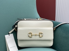 【P1130】古奇新款包包 Gucci Epilogue 1955马衔扣全皮单肩斜挎包 白色