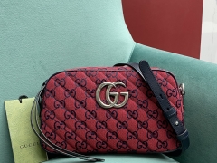 【P980】Gucci女包价格 古驰2021新款447632红色帆布单肩斜挎包24CM