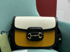 【P1500】Gucci女包价格 古奇1955姜黄拼奶白全皮马鞍包单肩斜挎包25CM