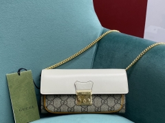 【P1020】Gucci女包批发 古驰新款658226白色拼色Padlock链条包斜挎包