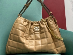 【P1650】Gucci女包批发 古驰746210奶茶色绗缝格子Deco托特包单肩包