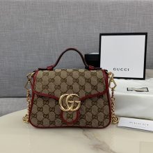 Gucci包包官网 古奇新款双G帆布拼牛皮手提斜挎女包21CM 红色拼