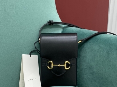 【P1020】Gucci包包批发 古奇625615原厂牛皮1955马衔扣斜挎手机包 黑色