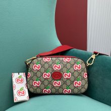 【P800】Gucci七夕情人节新款 古奇双G苹果图案原厂经典老花女款腰包胸包24.5CM