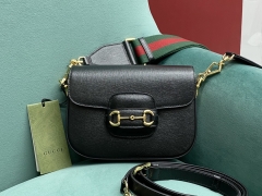 【P1430】Gucci热销女包 古奇658574全皮小号双肩带马鞍包20CM 黑色