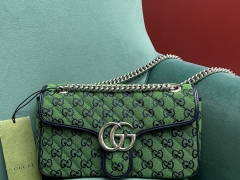 【P1200】Gucci包包官网 古奇443497绿色双G布料链条单肩包26CM