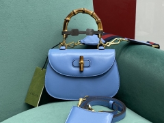 【P1580】一件代发 Gucci古驰秋冬新款675797蓝色全皮竹节包手提女包