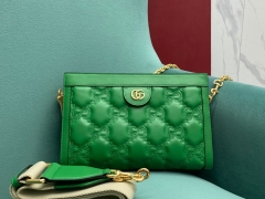 【P1350】古奇包包批发 Gucci2022新款702200绿色全皮浮雕双肩带斜挎包