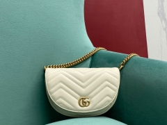 【P1280】古奇包包批发 Gucci Marmont绗缝迷你半月包肩背包链条斜挎包 白色