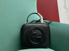 【P1320】古奇包包批发 Gucci Blondie系列浮雕效果双G手提小方包 黑色
