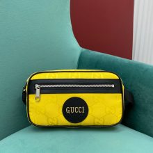 Gucci包包官网 古驰新款631341黄色双G帆布男女通用OTG腰包胸包25CM