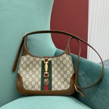 【P1250】Gucci女包价格 古奇新款红绿织带帆布jackie单肩包腋下包28.5CM