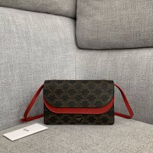 思琳新品包包 Celine新款100852老花帆布拼红色多层单肩斜挎女包20CM