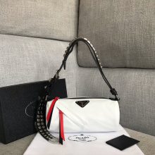 普拉达包包批发 Prada82046白色进口尼龙布宽肩带单肩斜挎女包24CM