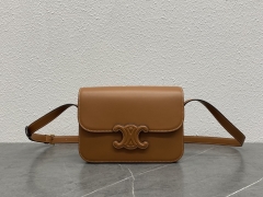 【P1650】赛琳包包批发 Celine黄褐棕牛皮浮雕凯旋门Box女包22CM