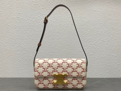 【P1170】思琳女包货源 Celine TRIOMPHE新款印花米白帆布凯旋门单肩包