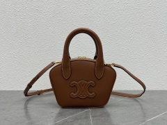 【P1320】Celine包包官网 赛琳110462黄褐棕全皮保龄球包斜挎小包20CM