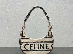【P1320】赛琳女包货源 Celine全新AVA麻布黑色字母新月包型单肩腋下包