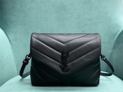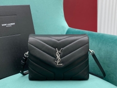 【P1500】圣罗兰包包批发 YSL 459749黑色银扣Y字纹LOULOU大号真皮斜挎女包