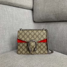 厂家直销 Gucci古驰红色磨砂皮拼双G面料小号酒神包链条单肩包20CM
