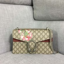 古驰包包批发 Gucci天竺葵系列进口GG面料酒神包虎头包链条单肩女包28CM