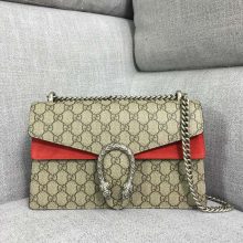 厂家直销 Gucci古奇红色磨砂皮拼双G面料虎头包酒神包链条单肩包28CM