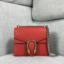 古奇包包批发 Gucci红色荔枝纹牛皮链条单肩斜挎包小号酒神包20CM