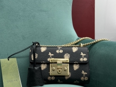 【P1130】Gucci包包官网 古奇409487黑色草莓樱桃水印全皮padlock斜挎包