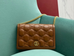【P900】Gucci包包官网 古驰Matelassé皮革绗缝几何图案链条单肩包 723787棕色