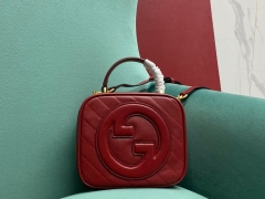 【P1320】Gucci Blondie系列小方包 古驰744434酒红色立体浮雕双G手提包