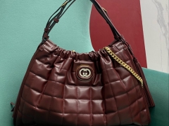 【P1650】Gucci古奇2023新款Deco系列绗缝格子链条单肩托特包 酒红色
