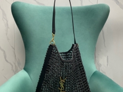 【P1320】YSL圣罗兰Saint Laurent Oxalis草编编织网格镂空肩背包 黑色